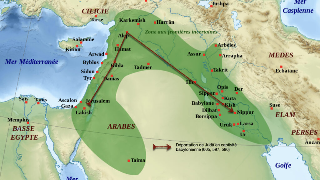 - En 605, les babyloniens emportent une partie de l’élite judéenne dont un certain Daniel. Ce sont des sortes d’otages pour éviter une nouvelle révolte.