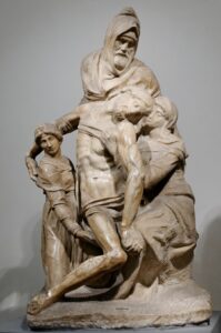 Voici un exemple : la Piéta de Florence. Une des toutes dernières sculptures de Michel-Ange, peintre, poète, architecte et sculpteur. Un artiste hors-pair qui a témoigné de sa relation avec Jésus à travers maintes œuvres et poèmes.
