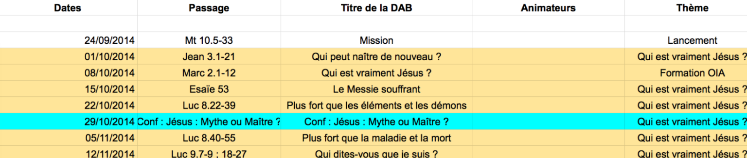 La façon la plus simple d’organiser un GBU, c’est de ne pas avoir de programme de DAB : chaque animateur choisit le passage qu’il désire (=qui ne va pas lui demander un trop grand travail de préparation). La faiblesse de cette (non) organisation, c’est que le contenu va être très aléatoire d’une réunion à l’autre. Dans ce cas, pas facile d’inviter quelqu’un qui voudrait découvrir la Bible car on ne sait pas trop si la DAB va être adaptée ! Sans compter que les GBUssiens vont finir par galérer à trouver des passages.