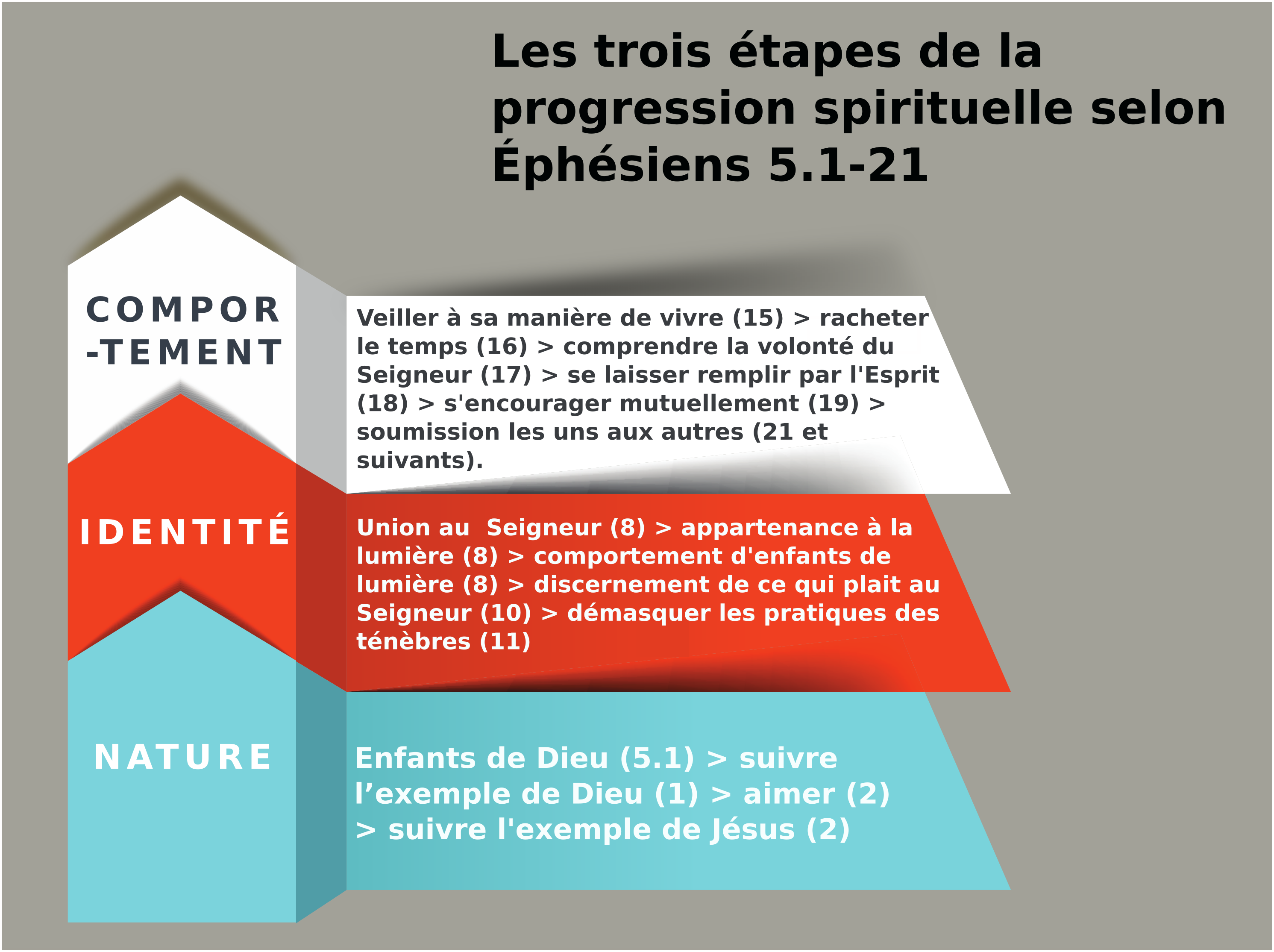 Après avoir décrit les cheminements radicalement différents des chrétiens et non chrétiens puis les comportements qui en découlent, Paul va maintenant montrer les étapes qui construisent un disciple de Jésus (tout en continuant à jouer sur les oppositions).