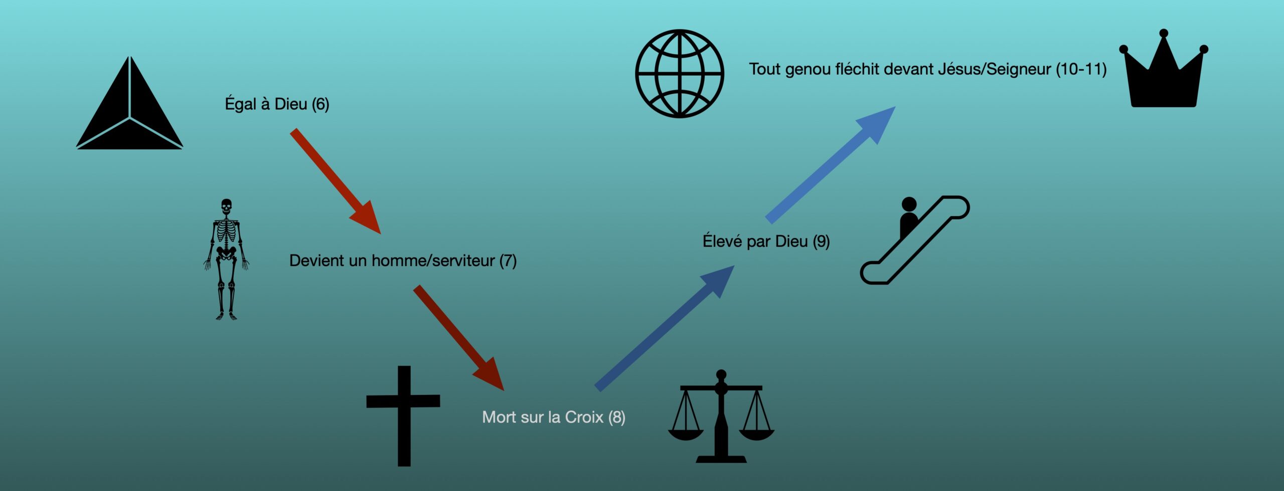 - [I] Pourquoi Paul utilise-t-il l’exemple de Jésus (et pas un argument philosophique) ? Parce que les philippiens ont Jésus pour exemple suprême et donc essaient de l’imiter